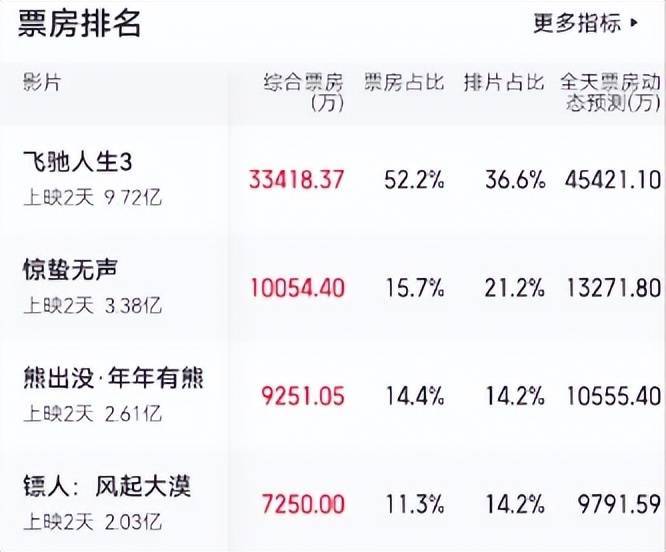 这部投资巨大,集合了吴京、谢霆锋、李连杰等四代动作明星的大片,上映两天,票房刚破2亿。与之对应的,是领跑春节档的《飞驰人生3》票房已破9亿。