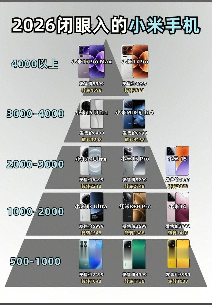2026年1月,数码圈的热度依旧不减,对于米粉来说,选择一款合适的小米手机不再是难题。今天我们就结合这份金字塔式的推荐榜单,从高端旗舰到入门性价比机型,逐一拆解各价位段最值得入手的小米机型,帮你精准找到适合自己的那台“梦中情机”。