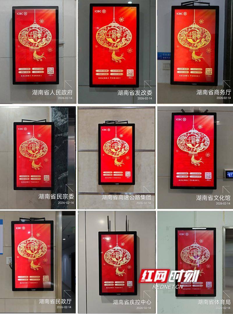 工商银行湖南省分行新春祝福主题海报亮相长沙各党政机关、企事业单位等电梯LED屏。策马扬鞭启新程,笃行致远向未来。2026年,工商银行湖南省分行将继续坚守初心、勇担使命,锚定湖南“三高四新”美好蓝图,深耕实体经济“沃土”,厚植普惠民生“根基”,不断深化产品创新、提升服务质效,以金融之力赋能地方发展、守护百姓幸福,为高质量发展湖南篇章贡献工行力量。举报/反馈